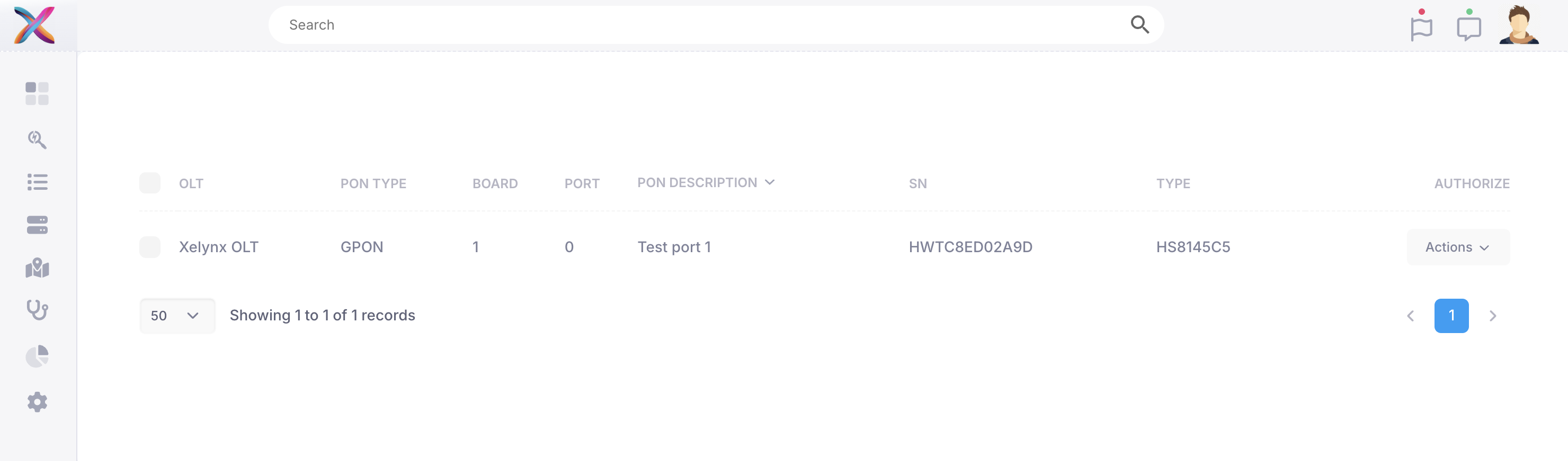 Xelynx displays list of ONUs which are connected to OLT but are not configured. You can enable autofind on pon ports from OLT settings.