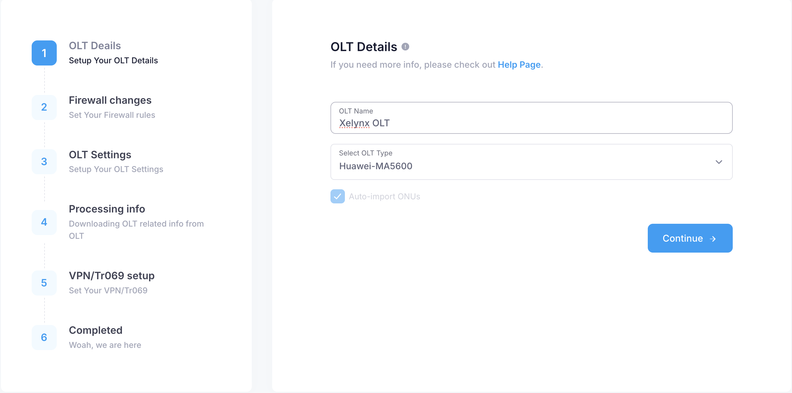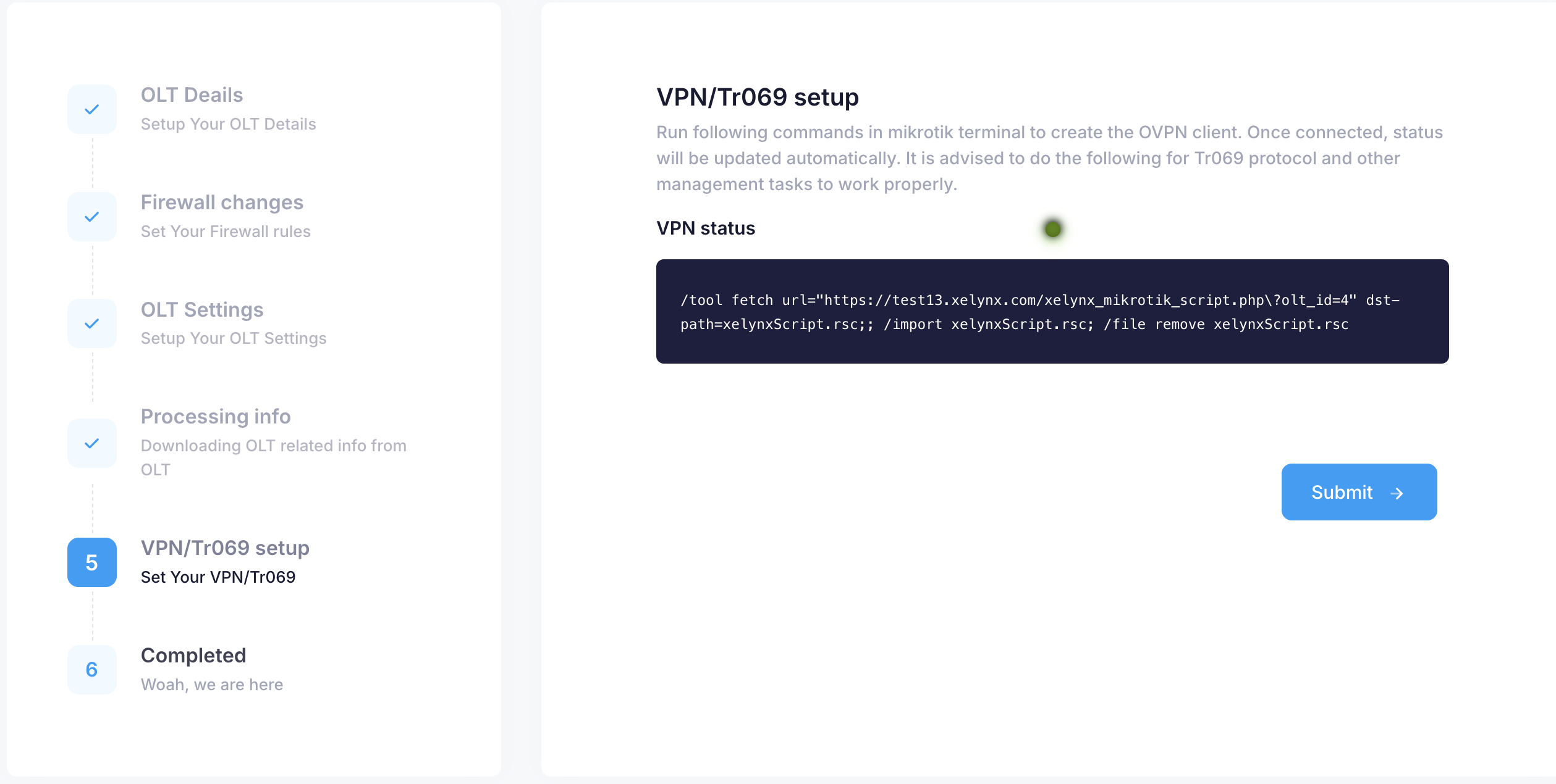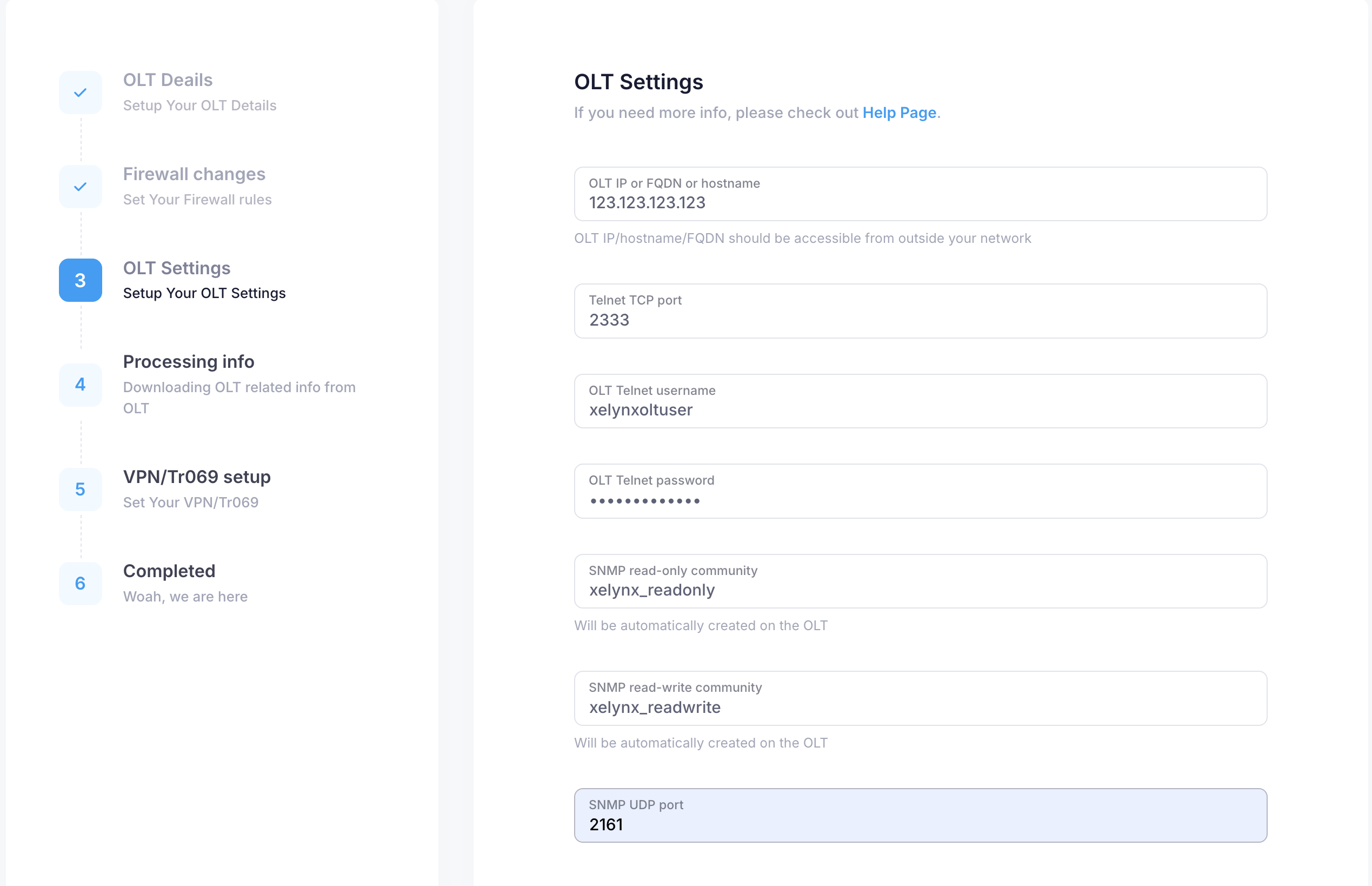 In this step, you need to provide details sor Xelynx to access your OLT
