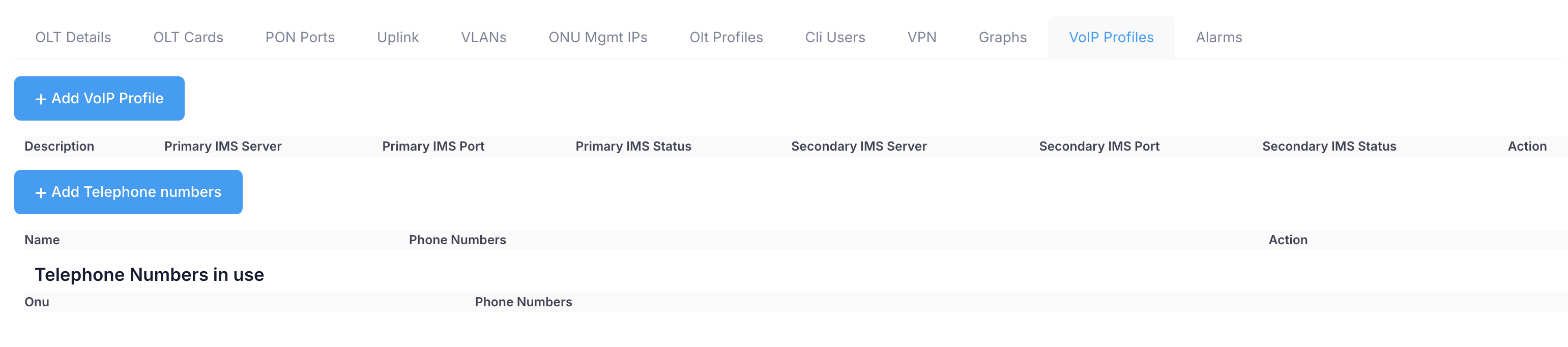 You can add/modify/delete VoIP profiles from here. You can assign numbering pool which can be used on ONUs.