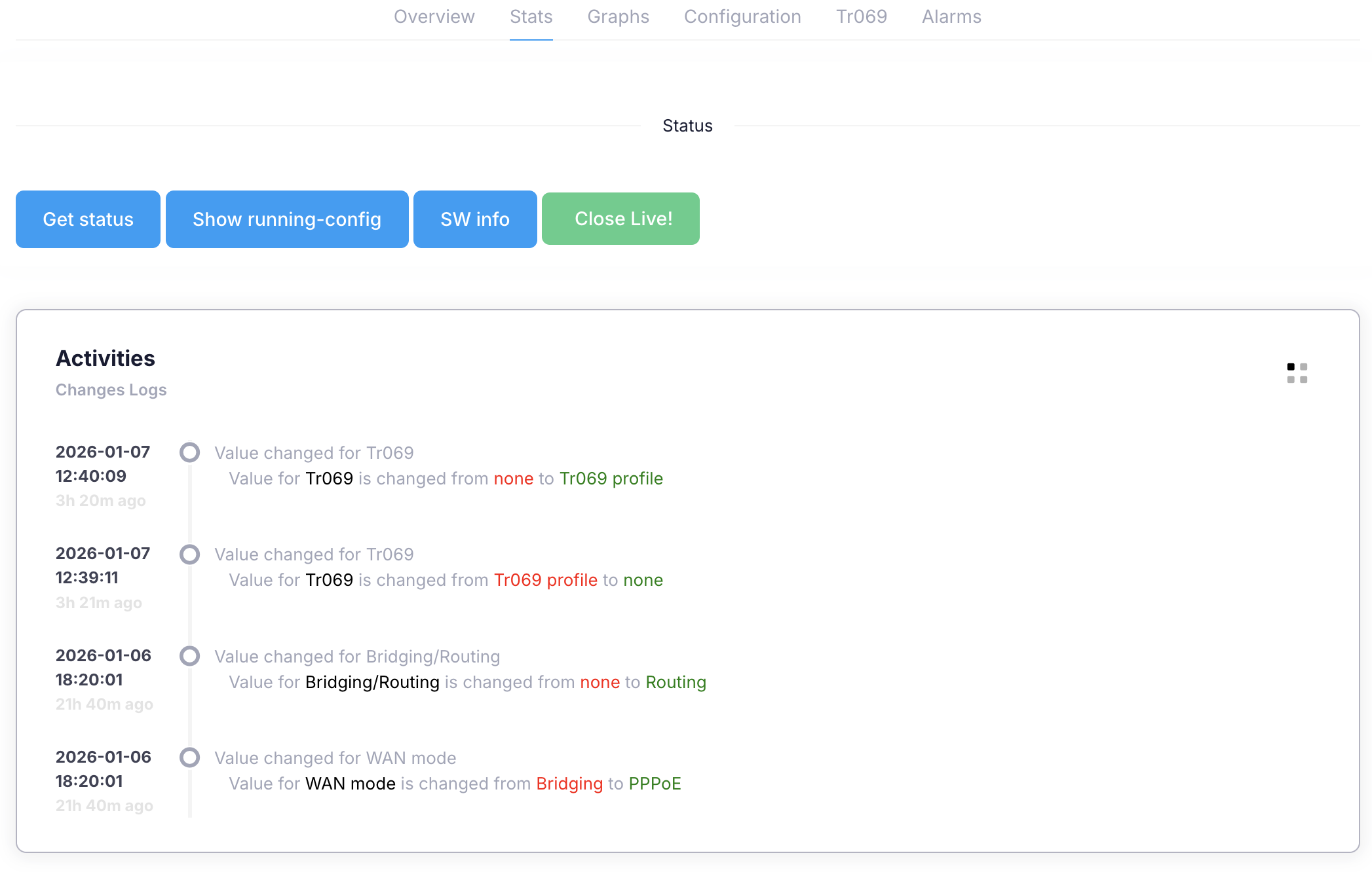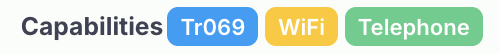 Tr069: This tells you if device is connected on Tr069. WiFi: This tells you if the device supports WiFi. Telephone: This tells you if the device supports VoIP. CATV: This tells you if the device supports CATV. |
